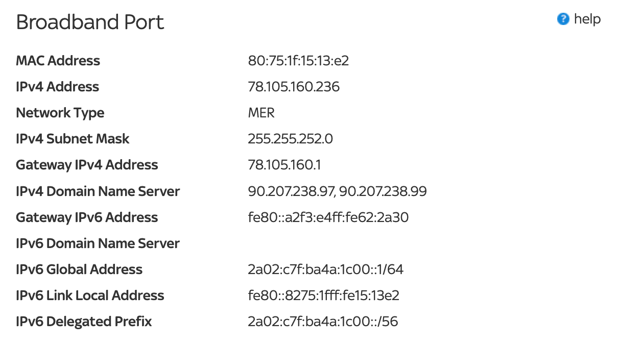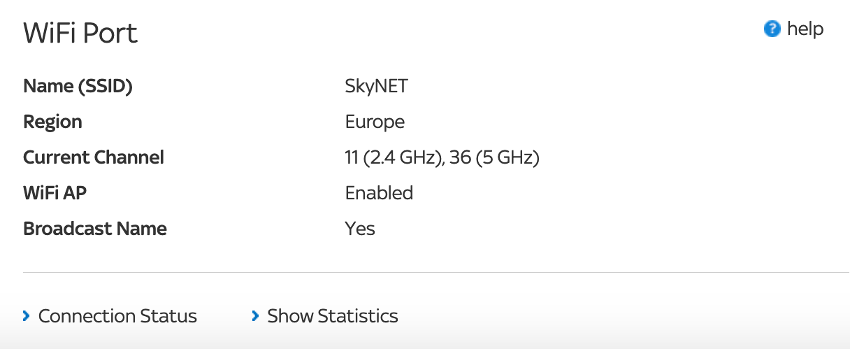 This page shows the current settings for your Sky Hub. We have preconfigured your Sky Hub with the optimum settings. This is a read-only summary page. If you wish to change settings, use the menus at the top of this page.